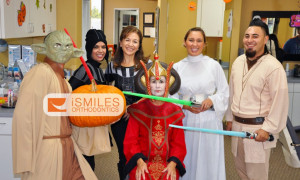 Oh, you didn't know? We had the Star Wars crew invade our Irvine Orthodontics office last year including a fairly tall Yoda, a very stern Princess Amidala, Princess Leia, a Jedi, and two female Darth Vaders. Can't believe that there wasn't a Boba Fett or a Darth Maul. Still, you can see that our office loves Halloween and loves dressing up. We're still not sure what this year's theme will be. If anyone has any great ideas, please feel free to send them on over.